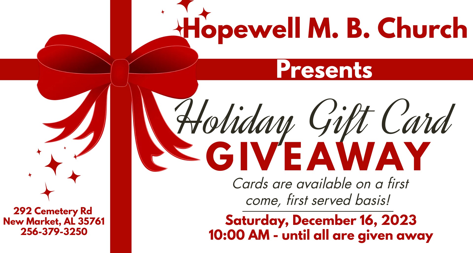 For online payments, click the link below. hopewellmbc.org/banquet.